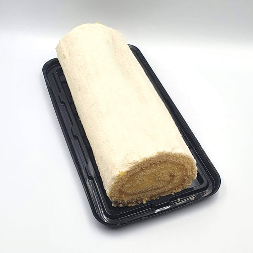 Pan natural hecho rollito relleno de crema pastelera cubierto de cremaquilla con azúcar. (10 porciones)