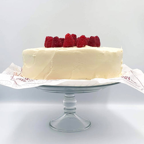 Suave pan tipo red velvet con relleno y cobertura de betún a base de queso crema decorado con zarzamoras